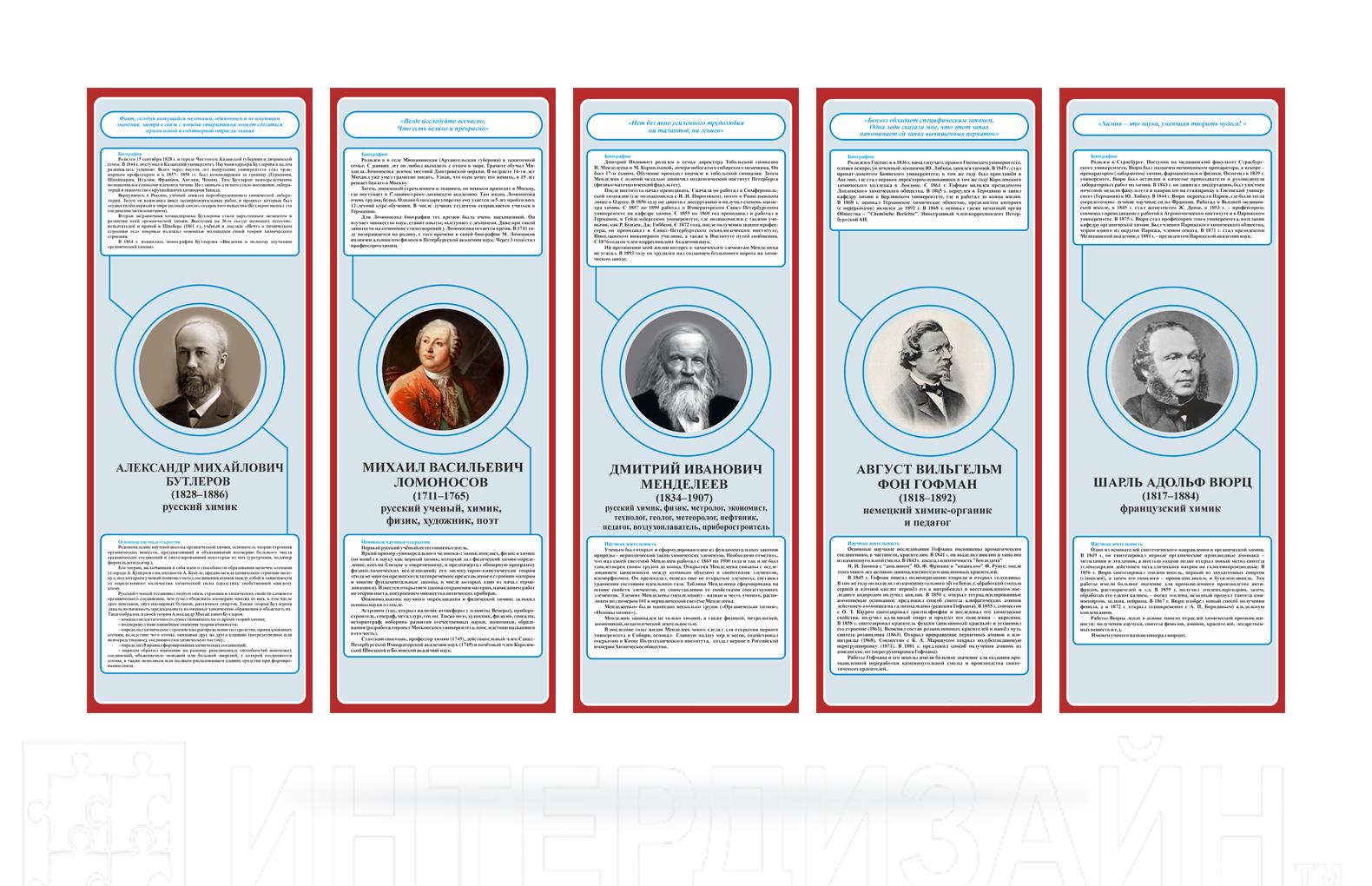 Комплект стендов для кабинета химии "Великие ученые и их деятельность" - Описание