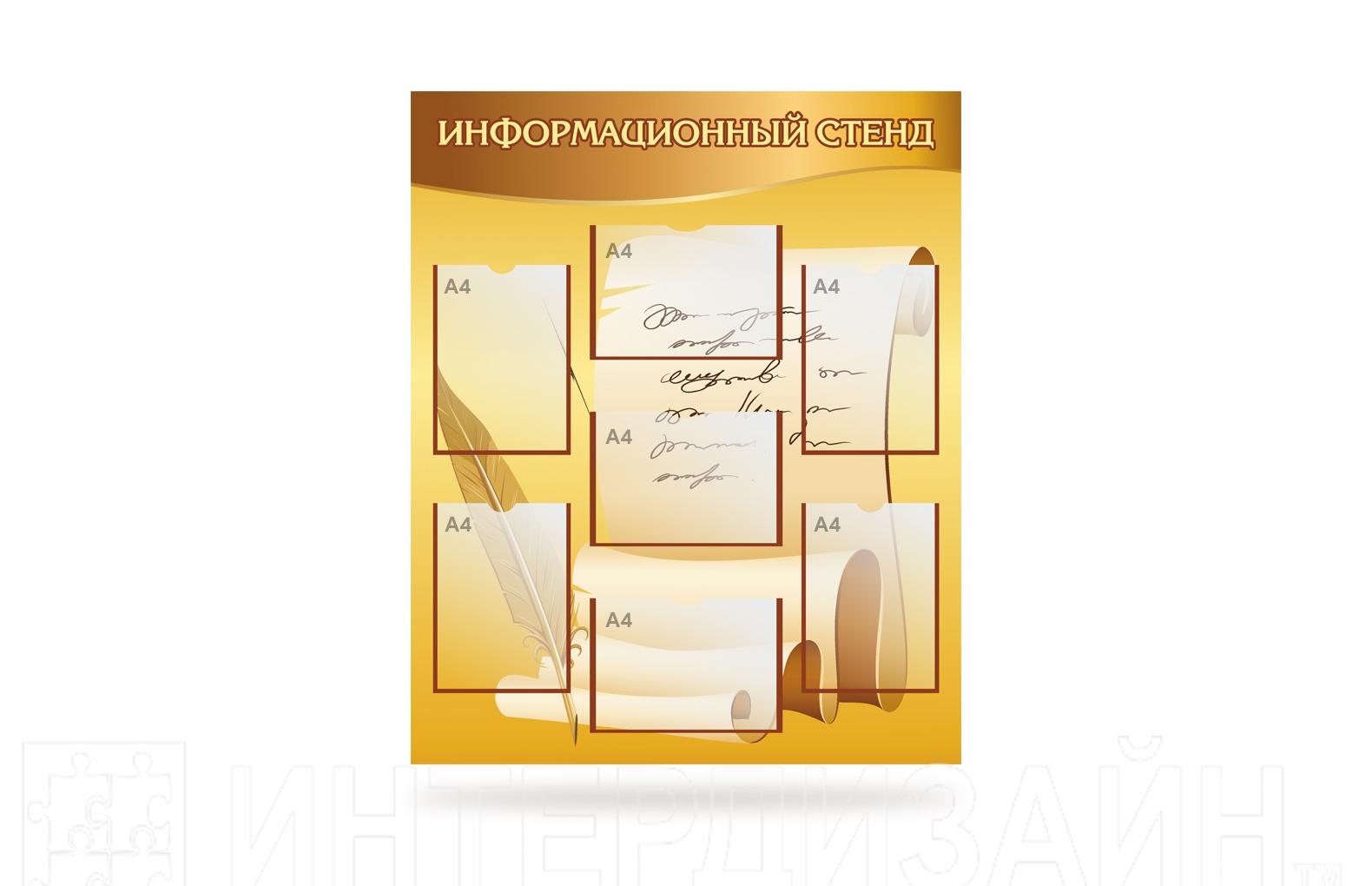 Компания Интердизайн является производителем и отвечает за качество своей продукции. Также, как преимущество - вы можете заказать индивидуальный макет стенда абсолютно бесплатно, выбрать количество и размер карманов, а также размер самого стенда.