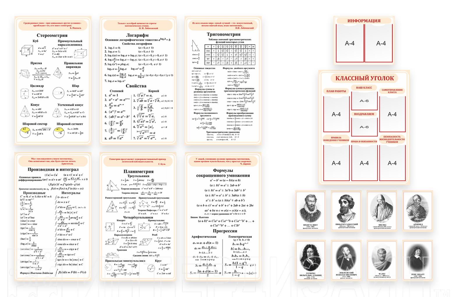 Комплект стендов для кабинета математики. СУПЕРЦЕНА! - Описание