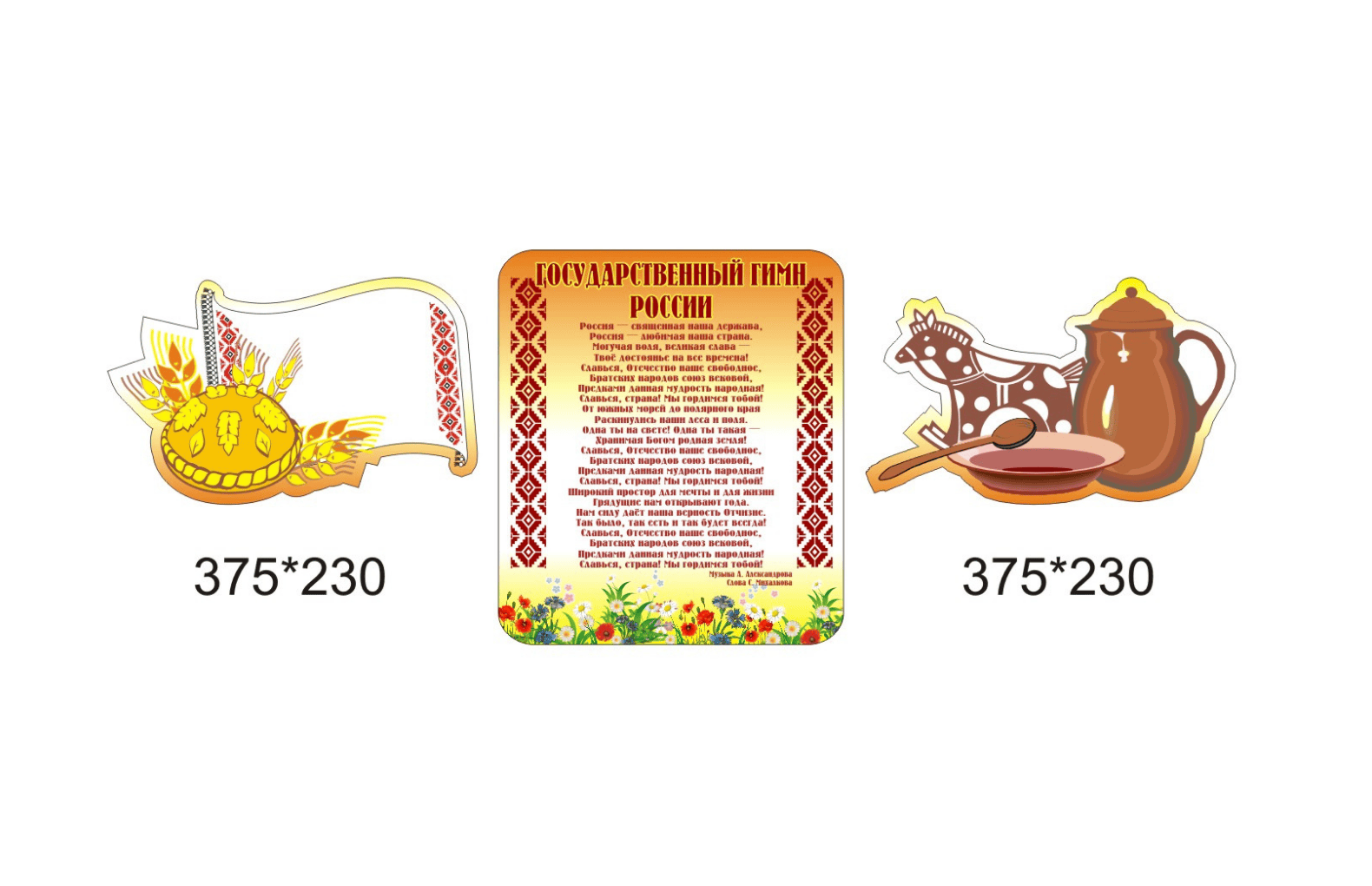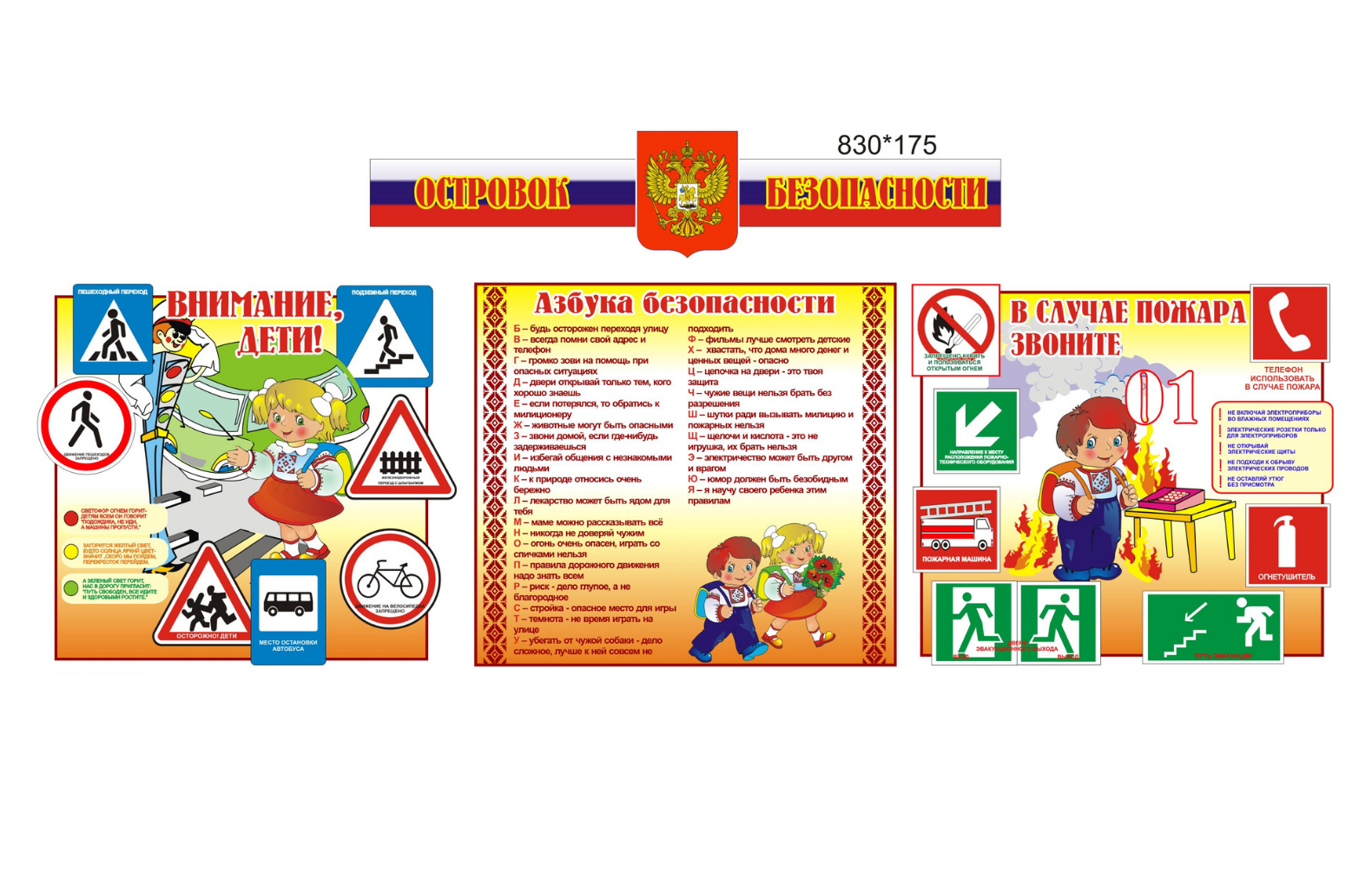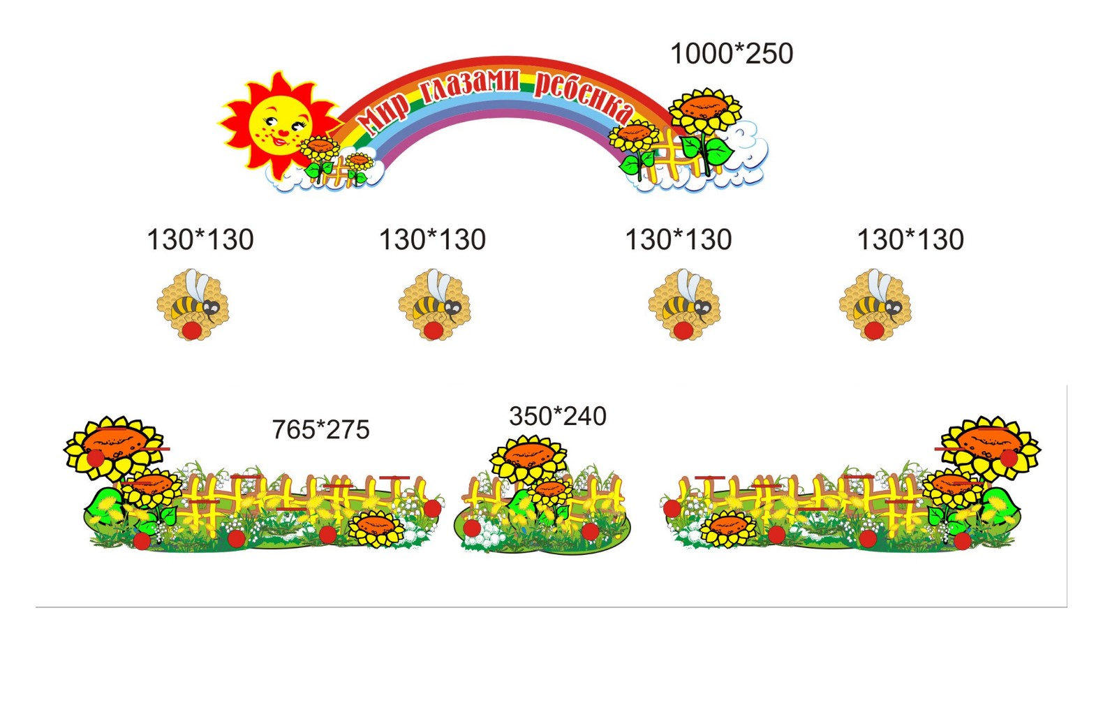 Размерклассный уголок - 130х80 см , 2 стенда "Сегодня на уроке" - 65х80 см, шапка "Россия - моя родина" 100х15 см, 4 мини стенда 35х40 см, 2 стенд-рисунка -37х23 см, мир глазами ребенка: шапка 100х25 см, крепления 13х13 см, подсолнухи - 77х27 см, 35х24 см, шапка "островок безопасности" - 83х17 см, 3 стенда безопасности - 55х50 см