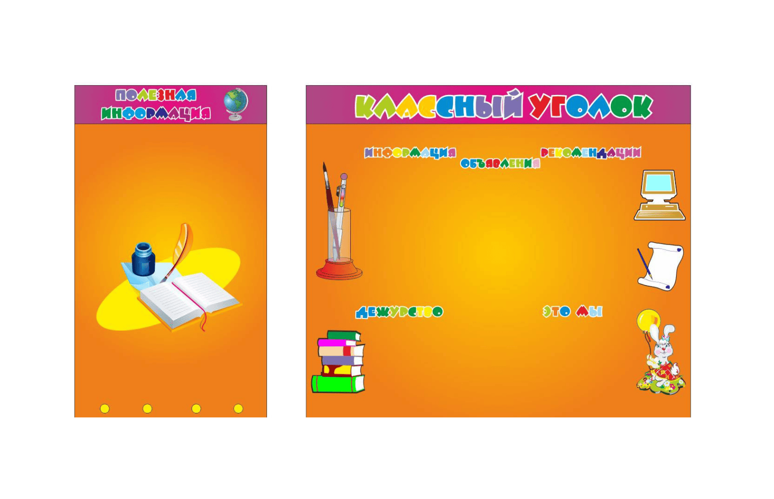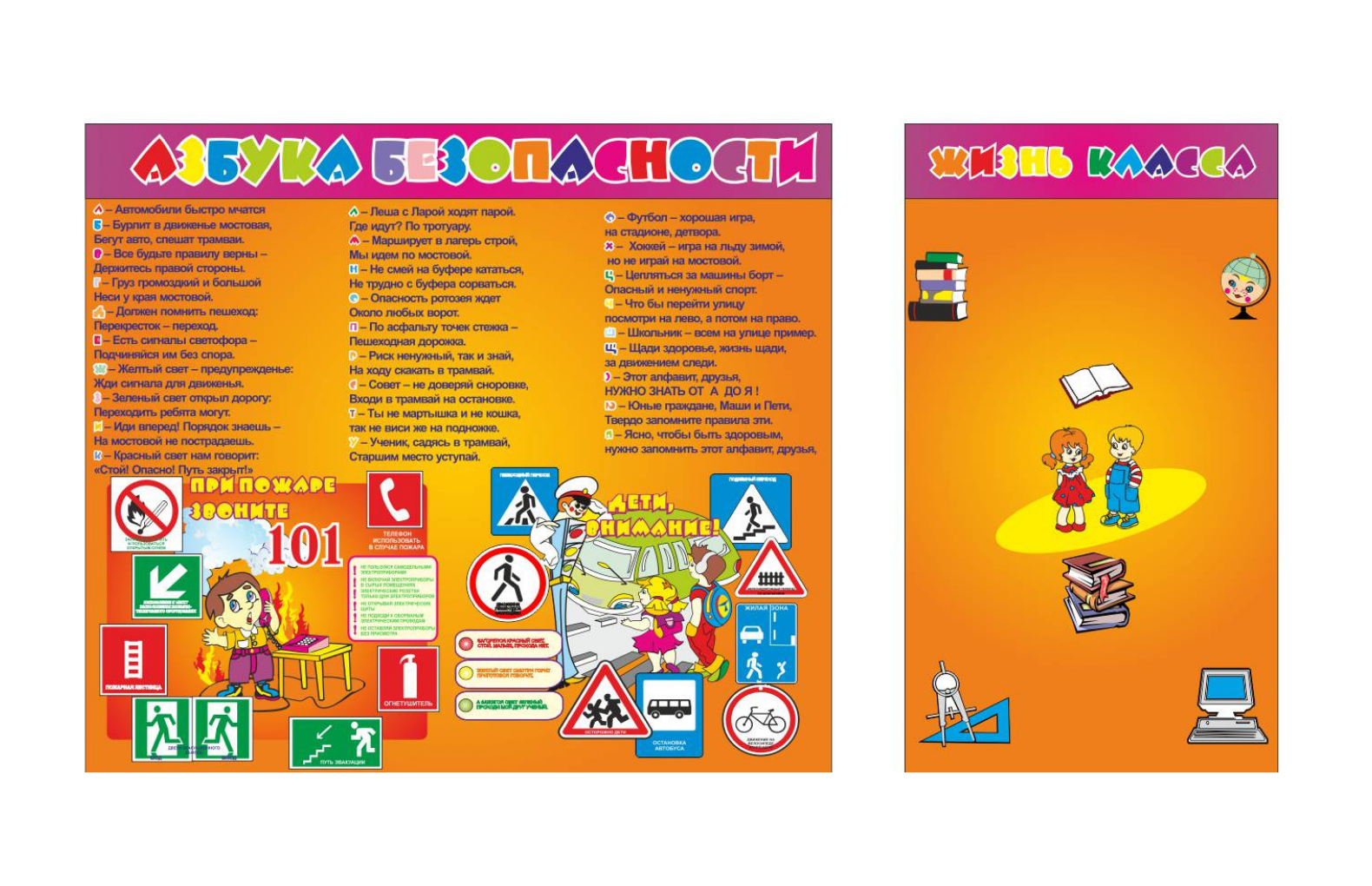 В комплект стендов входит стенд «Алфавит», стенд «Жизнь класса» с кармашками для