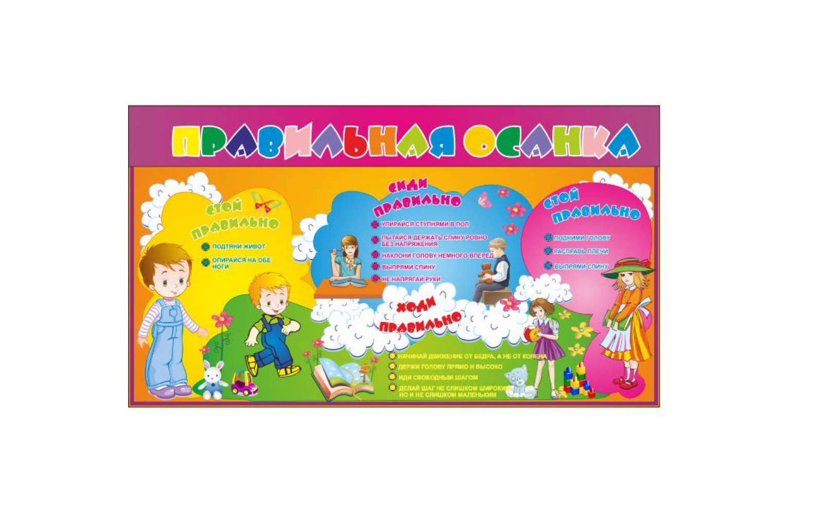фотографий, стенд «Полезная информация» для размещения плакатов, стенд «Правильная осанка»
