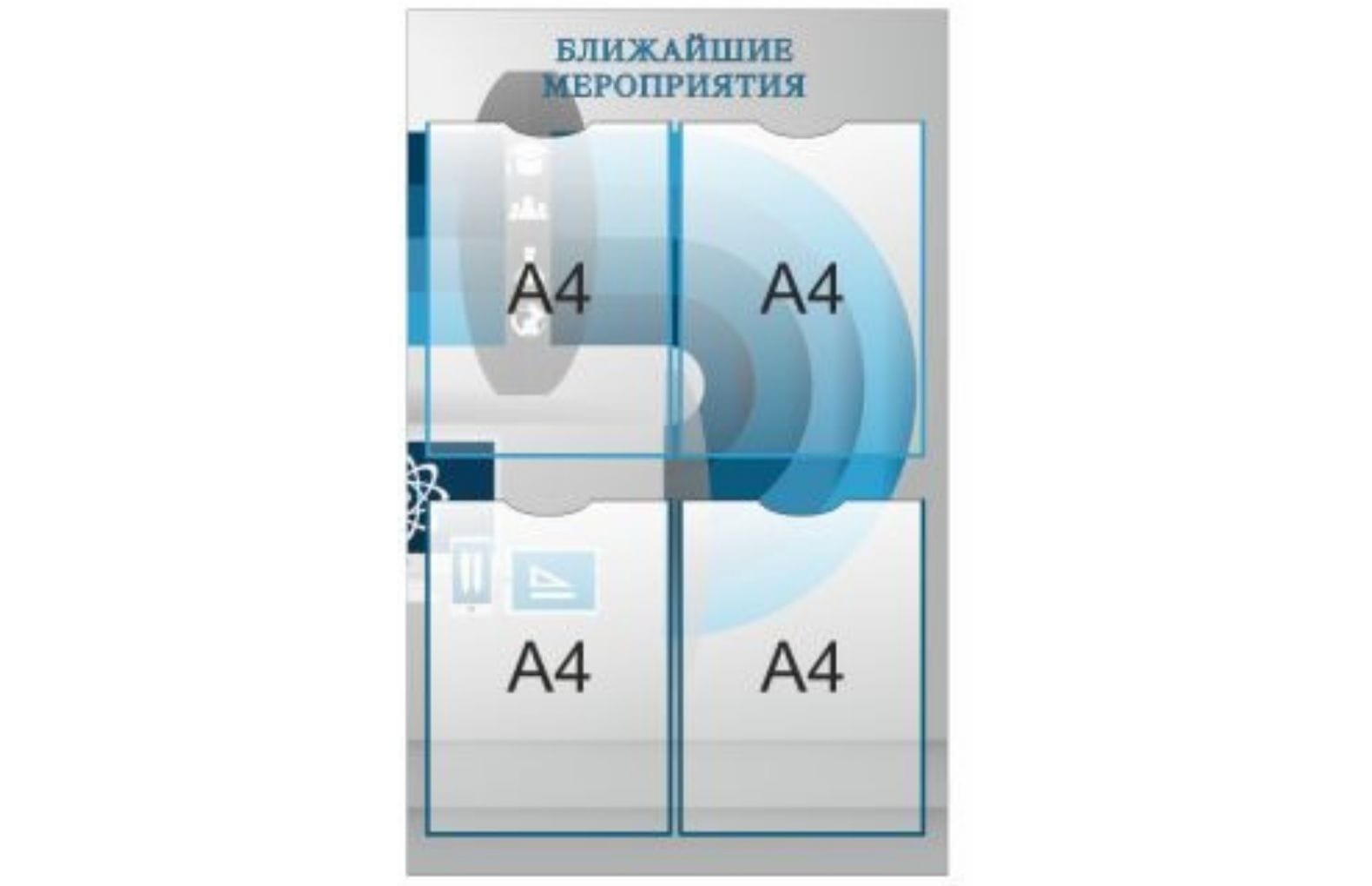 - Стенд: "Ближайшие мероприятия" (500мм х 800мм), содержит 4 кармана А4