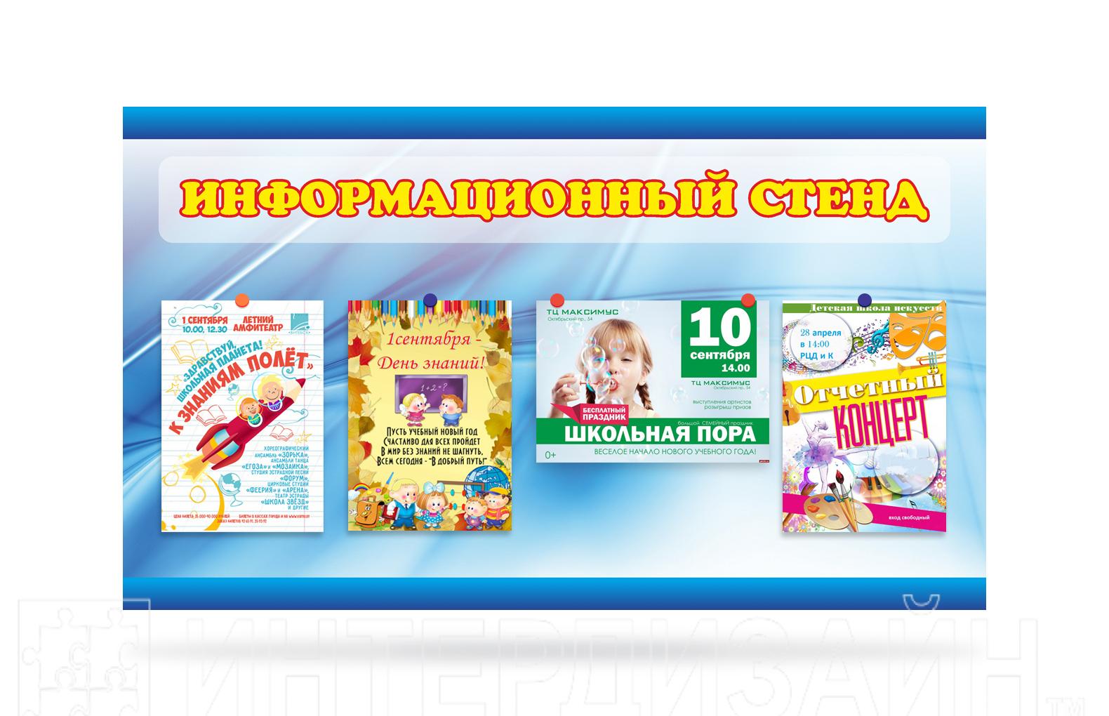 Также, по желанию вы бесплатно можете заказать индивидуальный дизайн стенда: рисунок, формат, материал и т.д.