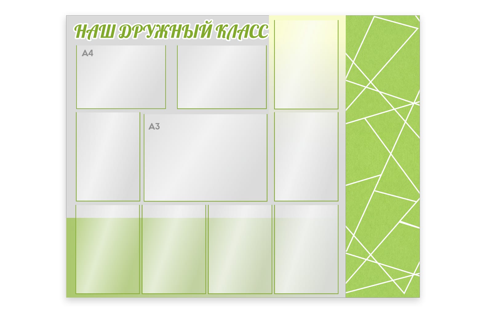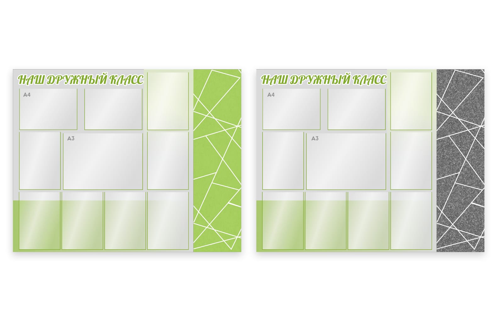 В комплекте:стенд с карманами и войлоком: А4-9 шт., А3- 1шт., фурнитура для крепления