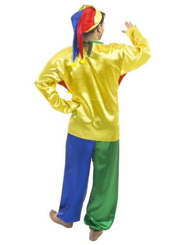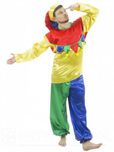 Для веселого праздника широкой Масленицы мы придумали карнавальный костюм «Скоморох». Яркие цвета отлично сочетаются в треугольниках, украшающих полочку оригинальной кофты. Концы треугольников украшены помпонами. Сзади по горловине кофта завязывается на ленту. Широкие свободные брюки по талии и по низу собраны на резинку. В комплект входит также шутовской колпак с двумя концами, украшенными помпонами, и пояс с помпонами. Карнавальный костюм «Скоморох» выполнен их крепсатина. Народный костюм - для народного праздника, веселых скоморошьих гуляний. Ксотюм подойдет также для утренников в детском саду, танцевальных и театральных представлений. Благодаря широкому крою костюм «Скоморох» не стесняет движения, его комфортно носить.