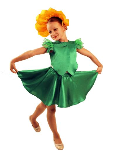 Детский карнавальный костюм Подсолнух состоит из расклешенной юбочки, жилетки и ободка с лепестками. Жилетка застегивается на липучку.