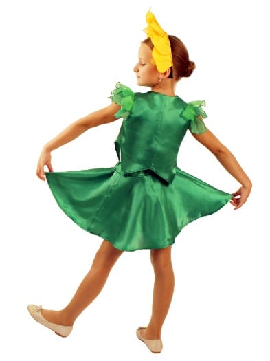 Детский карнавальный костюм Подсолнух состоит из расклешенной юбочки, жилетки и ободка с лепестками. Жилетка застегивается на липучку.