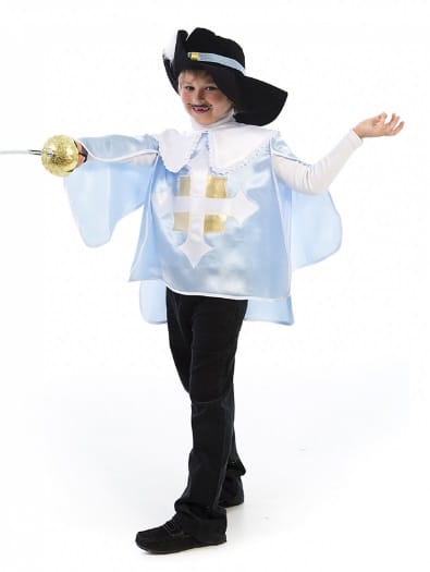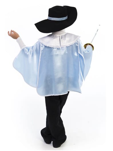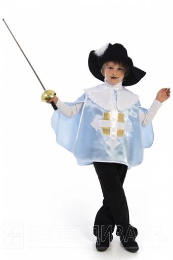 Легендарный роман Александра Дюма вдохновил наших художников на создание карнавального костюма "Мушкетер". Костюм состоит из широкого голубого плаща с аппликацией. Плащ украшен воротником, отороченным кружевом. В комплект входит также широкополая шляпа из велюра. Рекомендуем дополнить костюм белой рубашкой, темными брюками, ботинками в цвет брюк.