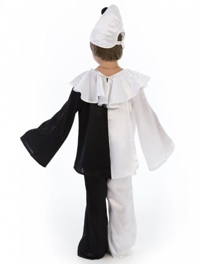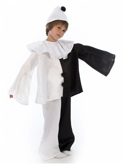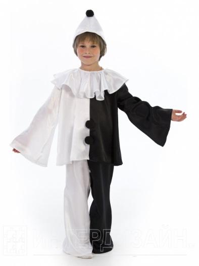 Карнавальный костюм "Пьеро" выполнен из крепсатина по эскизам наших художников, вдохновленных любовью детей к сказке "Буратино". Костюм выполнен из ткани белого и черного цветов. Широкая рубаха украшена воротником и помпонами. Широкие брюки собраны по талии на резинку. В комплект входит также колпак, подбитый синтепоном и снабженный подкладкой из хлопчатобумажной ткани. Рекомендуем дополнить костюм ботинками в цвет костюма или чешками.