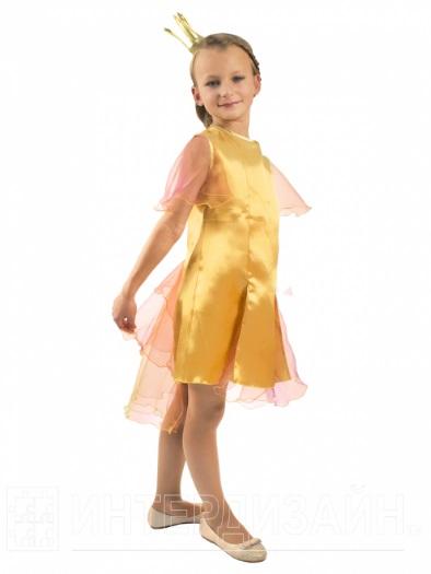 Детский карнавальный костюм Золотая Рыбка создан по мотивам одноименной сказки. в комплект входит золотое платье со вставками из органзы и корона.