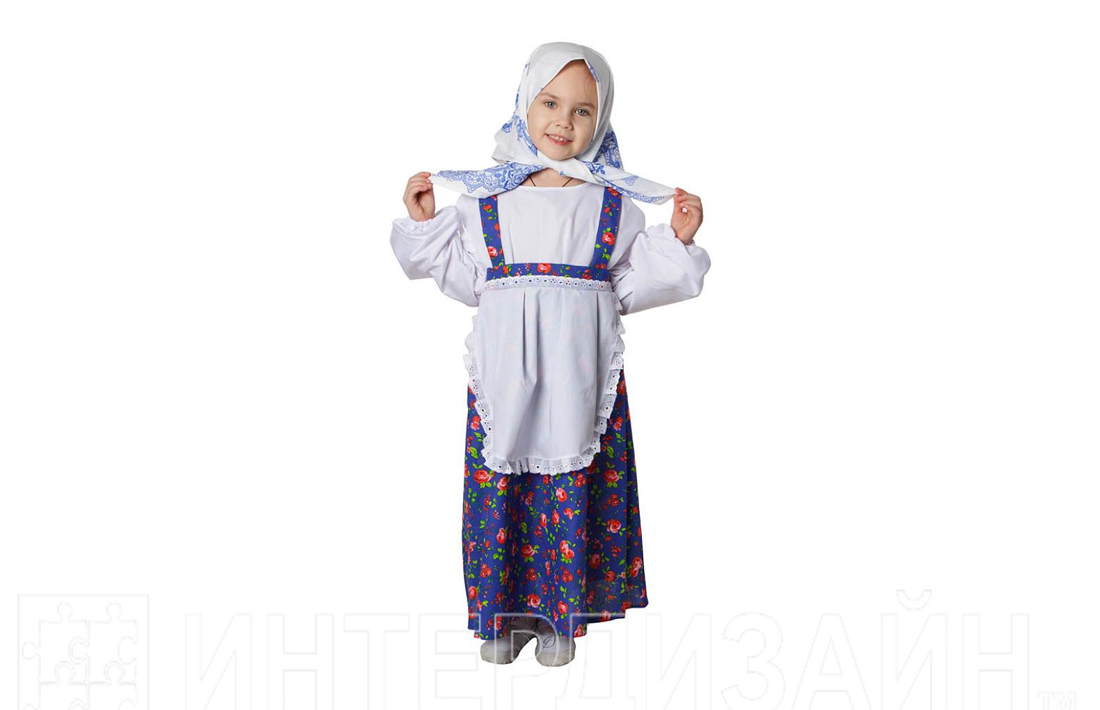 В комплект входят: Сарафан с имитацией блузки и передником и платок на голову
