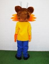 МатериалГолова - поролоновый каркас, обшитый коротковорсным мехом оранжевого и жёлтого цветов, и флисом белого цвета, хлопковая подкладка, смотровая область в глазах. Кофта - флис жёлтого цвета, хлопковая подкладка. Штаны - флис синего цвета, хлопковая подкладка. Бант - габардин фиолетового цвета. Перчатки - коротковорсный мех оранжевого цвета, хлопковая подкладка. Обувь - поролоновый каркас, обшитый флисом фиолетового или чёрного цветов, хлопковая подкладка, полиуретановая подошва.