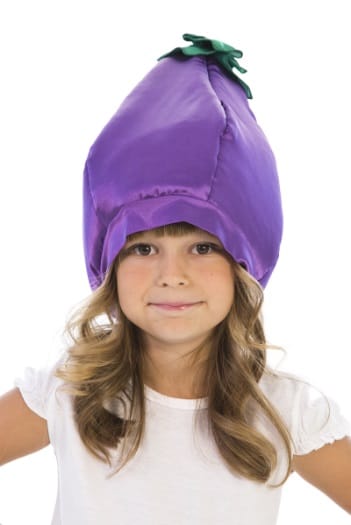 Спелый восточный овощ баклажан является частым гостем праздника Урожая и утренника в детском саду. Сам овощ баклажан имеет очень красивый «баклажанный» цвет и пышные формы. Вот такая и получилась карнавальная шапочка «Баклажан». Она выполнена из крепсатина. Аппетитная форма воссоздана благодаря вставленному внутрь синтепону. Шапочка снабжена подкладкой из хлопчатобумажной ткани и украшена на самом кончике листиком из крепсатина. Универсальный размер регулируется резинкой. Шапка легкая и носить ее очень удобно. Костюм баклажан подойдет как мальчикам, так и девочкам.
