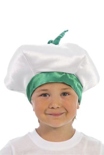 Карнавальная шапочка «Чеснок» разработана специально для праздника Урожая в детском саду. Шапочка выполнена из белого крепсатина и имеет традиционную «пухлую» форму чеснока. Из верхушки торчит зеленый хвостик. Основание шапочки зеленого цвета. Сзади вставлена резинка. Внутри шапочка проложена тонким слоем синтепона для придания ей дополнительнго объема. Благодаря подкладке из бязи шапочку удобно носить. Костюм чеснок подойдет как мальчикам, так и девочкам.
