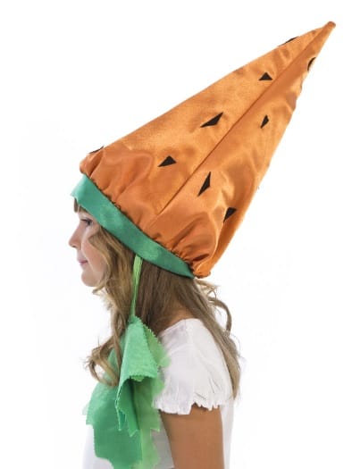 Для приготовления винегрета на празднике Урожая в детском саду не обойдись без морковки. Именно она становится важным героем и костюм морковки тоже должен быть подобающим. Карнавальная шапочка «Морковка» выполнена из крепсатина, поэтому она красиво переливается и имеет очень интересную и сложную фактуру. Шапочка украшена зелеными листиками из органзы и крепсатина. Для создания объема шапочка подбита синтепоном, а для обеспечения комфортности при носке посажена на бязь. Размер шапочки универсальный, благодаря вставленной резинке. Костюм морковки подойдет как мальчикам, так и девочкам.