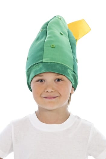 Праздник урожая в детском саду очень нравится детям. Роли, как правило, достаются всем, т.к. природа создала большое количество фруктов и овощей. Для того, кто выбрал себе роль огурца мы придумали карнавальную шапочку «Огурец». Шапочка выполнена из крепсатина двух разных оттенков, что подчеркивает интересную геометрию изделия. Пупырышки, свойственные для огурца, выполены из пуговиц, пришитых равномерно по всему изделию. Кончик огурца украшен оруречным цветком желтого цвета. шапочка подбита синтепоном, что придает ей дополнительный объем и жесткость. Шапочка снабжена подкладкой из бязи - натурального хлопчатобумажного полотна, благодаря чему ее удобно носить.