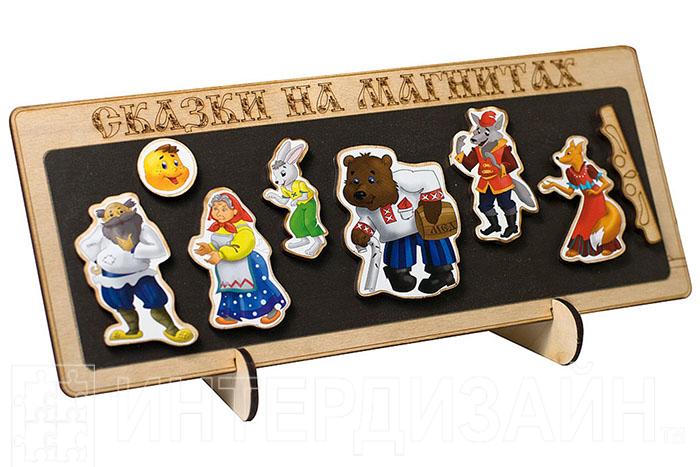 Набор состоит из доски с магнитным полем, фигурок – героев сказки «Колобок», подставки под доску.
