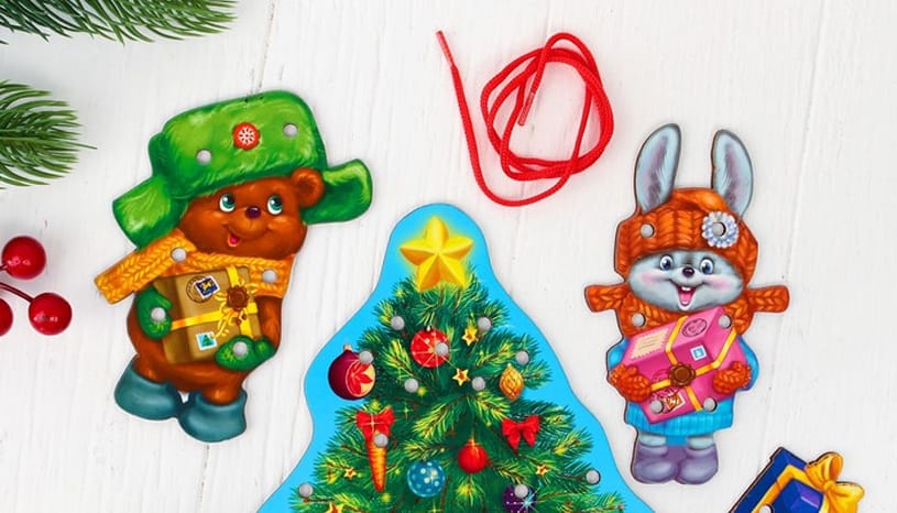 Шнуровка фигурная "Дедушка Мороз с подарками", 4 элемента набор 2шт