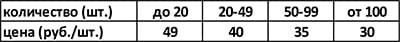При заказе от 20 шт. действует система скидок: