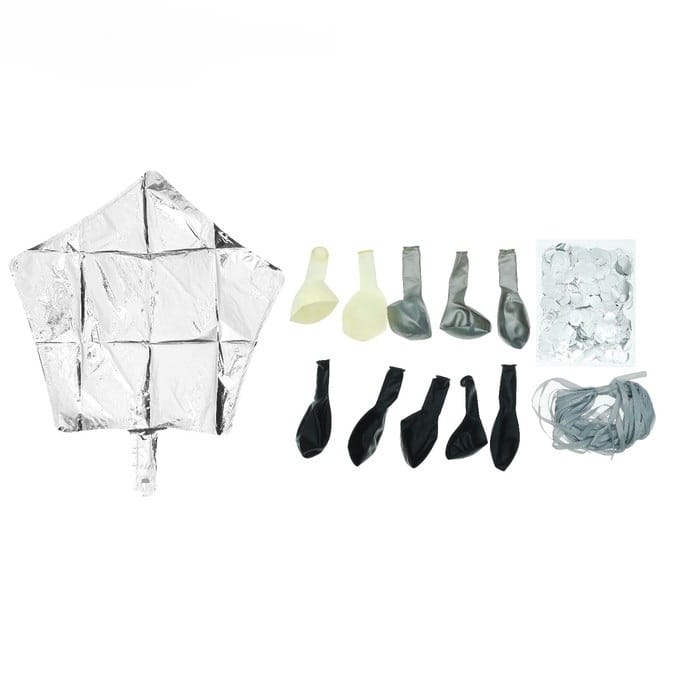 Фольгированный серебряный шар "Звезда", 2 прозрачных шара, 3 серебряных, 5 черных шаров, конфети и ленты для шаров